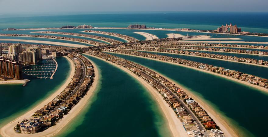 Lust auf einen Trip auf die Palme vor Dubai? Ihr erreicht sie per Monorail-Zug vom Atlantis Hotel aus oder per Speedboat. Palmen haben eine starke Symbolkraft für Wüstenbewohner: Sie signalisieren das Vorkommen von Wasser und Leben in einer lebensfeindlichen Umwelt. Deshalb wurde die künstliche Inselgruppe Palm Jumeiriah im Persichen Golf vor Dubai einer stilisierten Palme nachempfunden. Im neu gewonnenen Lebensraum der Offshore-Siedlung haben sich erstklassige Hotels und Restaurants angesiedelt, die ihre Gäste ausgiebig verwöhnen. Das bekannteste und auch imposanteste ist ohne Zweifel Atlantis – The Palm.
