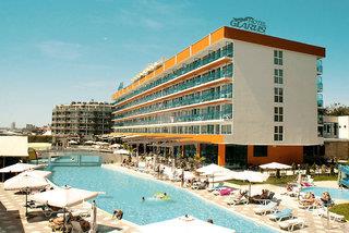 Lage: Im Feriengebiet Sunny Beach/Burgas, direkt am öffentl. Strand. Bars, Restaurants in unmittelbarer Nähe, Supermarkt, Einkaufsmöglichkeiten ca. 600 m entfernt. Nessebar ca. 4 km.