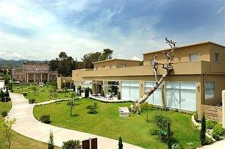 Ausstattung: Das Hotel vereint historischen Charme mit modernem Komfort. Mittelpunkt der Anlage ist die denkmalgeschützte Sikelianos‑Villa aus dem Jahr 1916. Hauptgebäude und Bungalows umgeben von einer großzügigen Gartenanlagen. Außenanlage mit Swimmingpool, Sonnenterrasse, Liegen, Schirme am Pool und Strand, Poolbar, Rooftop-Terrasse. Rezeption, WLAN. Hauptrestaurant mit Außenterrasse, À-la-carte-Restaurant. Landeskategorie: 4 Sterne, 42 Zimmer.