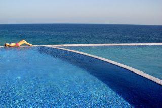 Deluxe Suite: Klimaanlage (zentral gesteuert), Minibar (geg. Geb.). Kitchenette mit Wasserkocher, Handtücher. DVD-Player, Telefon, Internet (geg. Geb.), Safe (geg. Geb.). Bad/Dusche, WC, Föhn, Bademantel. Balk./Terr. Geteilter Pool. Max. 2E.