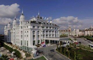 In bequemer Reichweite zur antiken Hafenstadt Side, im ruhigen Badeort Evrenseki, erwartet Sie direkt am Strand das extravagante Side Royal Palace zu Ihrem erholsamen Urlaub in der Türkei. Das famose All-inclusive-Hotel wird vorzugsweise von Paaren und Familien gebucht. Die ehemaligen Gäste vergeben Bestnoten für den exzellenten Service sowie für das leckere und immer frische Essen. In den Bewertungen werden zudem die vorzügliche Lage sowie das stimmungsvolle Ambiente des Strandhotels besonders oft positiv hervorgehoben.