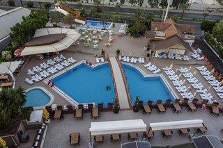 Ausstattung: Garten, 4 Pools (saisonal geöffnet), separater Kinderpool, Wasserrutsche. Liegen, Schirme, Auflagen am Pool und am Strand (inkl.), Handtücher (geg. Kaut.), Beach-Bar, Pool-Bar. Empfangshalle, Rezeption, Lobby-Bar, TV-Lounge. Restaurant (Buffet & à la carte) mit Terrasse, 5 Bars, Minimarkt, Shop, Friseur. Landeskategorie: 4 Sterne, 225 Zimmer, 2 Lifte.