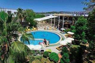 Ausstattung: Garten, 2 Pools, Kinderpool, Wasserrutsche. Liegen, Schirme, Auflagen am Pool und am Strand (geg. Geb.), Handtücher am Strand (geg. Geb.), Beach-Bar, Pool-Bar. Empfangshalle, Rezeption, Lobby-Bar, TV-Lounge. Restaurant (Buffet) mit Terrasse, Minimarkt, Friseur, Diskothek, Parkplatz (geg. Geb.). 210 Zimmer, 5 Etagen, 2 Lifte.