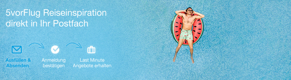 Hier einfach und schnell zum 5vorFlug Newsletter anmelden. Bleiben Sie somit immer up to date und erhalten Sie News und Reiseinspirationen direkt in Ihr Postfach! Aber auch über Gewinnspiele halten wir Sie natürlich auf dem Laufenden.